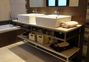 Un cuarto de baño lleva habitualmente pocos elementos de mobiliario ya que en su espacio nos encontramos con elementos específicos como son los aparatos sanitarios.